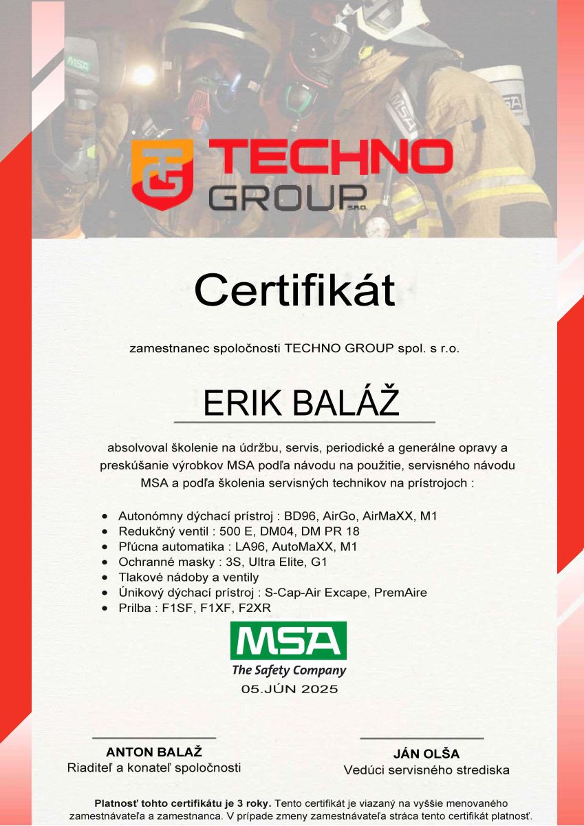 Certifikát servisného technika na servis ventilov VTI a tlakových nádob
