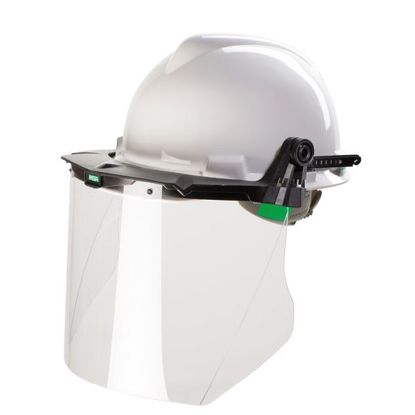 Všetky možnosti prilieb a štítov na ochranu pred preskočením elektrického oblúka pre elektrikárov a podrobné údaje nájdete v letáku „Ochrana hlavy a tváre pre elektrikárov“. Sú v ňom zobrazené 2 hotové súpravy =